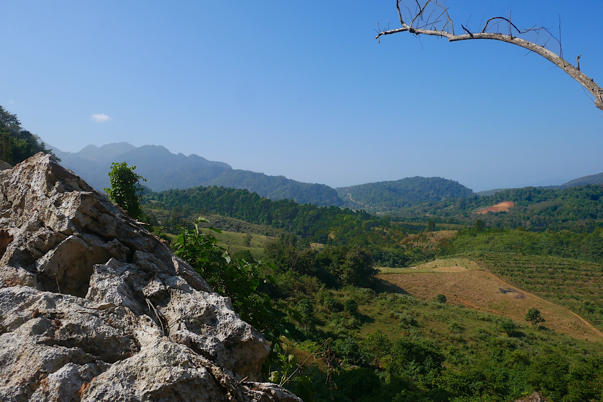 Die Wanderung führt uns direkt in eine Welt aus leuchtendem Grün. Wir folgen einem schmalen Pfad durch dichten, lebendigen Regenwald. Gerade als das grüne Blätterdach endlos erscheint, treten wir hinaus auf das Ackerland von Houy Nok Phit und werden von weiten Panoramen begrüßt. Hier, hoch über dem Nam Khan Tal, halten wir für ein malerisches Picknick und speisen mit einer der besten Aussichten der Region.